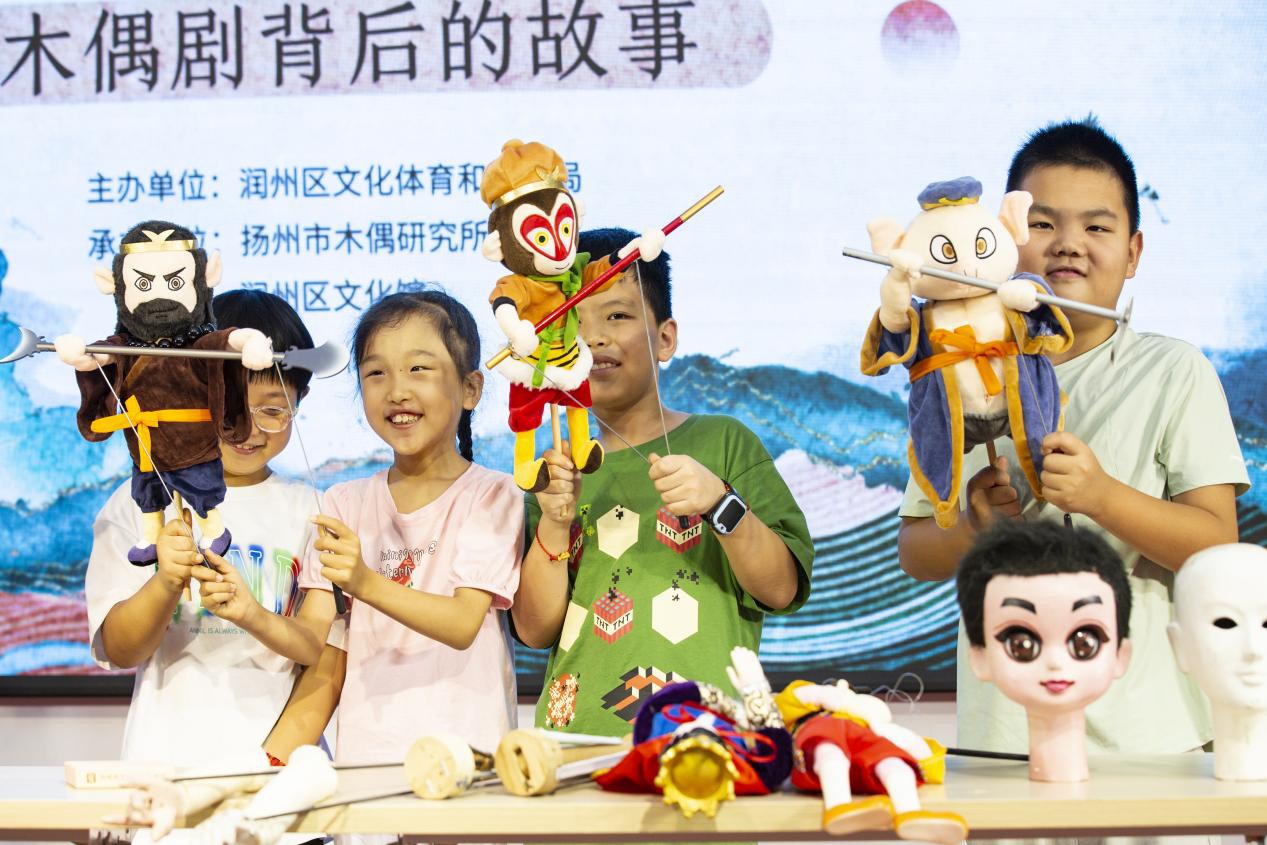 7月30日上午,由润州区文体旅游局主办,润州区文化馆与扬州市木偶研究所共同承办的“山水古渡·润心时光——木偶剧背后的故事”研学活动在润州区文化馆润心剧场里热闹举行,活动吸引了40多对亲子的报名参与。